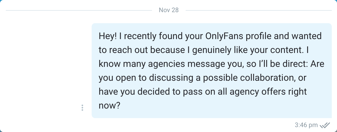 Don't waste your time and write to creators who already have an agency