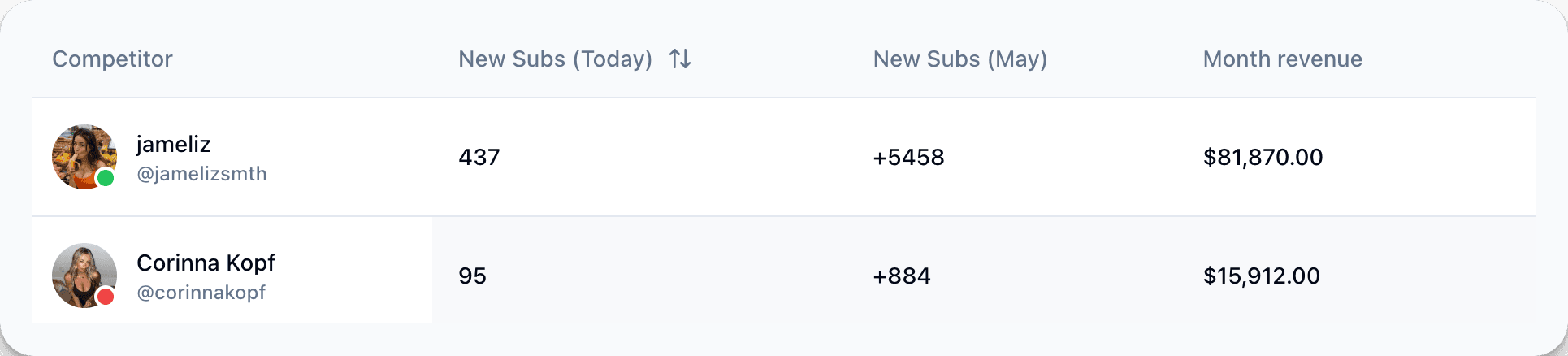 Gain insight into how many new subscribers your competition is making.