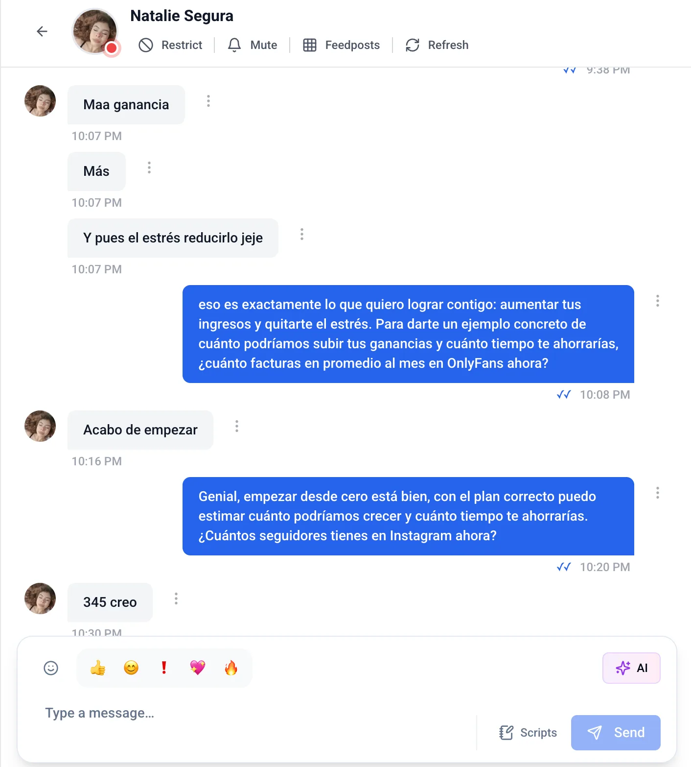 One-click conversion-optimized messages. AI handles objections instantly. Responds in any language. Every message moves creators closer to YES.
